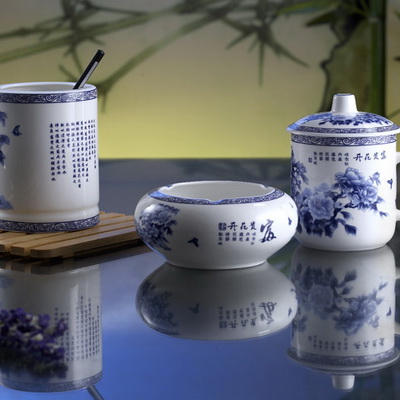 富贵花开(吉祥三宝青花三件套)