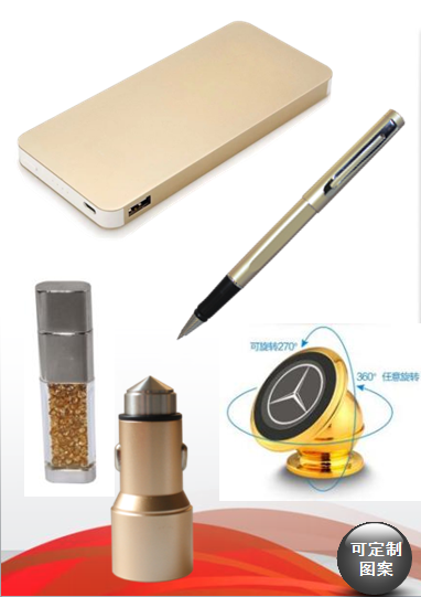 10000mAh移动电源+ 8GB水晶U盘+商务笔+手机支架+车充五件套