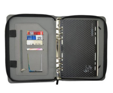 平整极致超薄,便携性十足,真皮皮包,内置活页笔记本,多个夹层可放银行卡