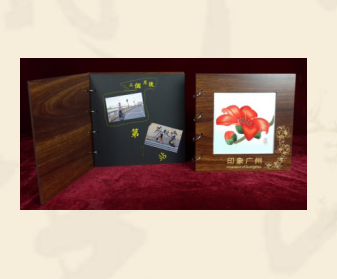 规格:240*240MM 材料:手工刺绣, (木板封面,六页高级无光相纸) 礼品制作:包装盒丝印,相册面激光雕刻个性化广告
