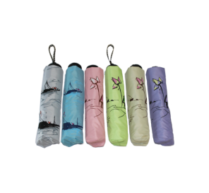 商品名称:天堂黑胶三折伞 规 格:57cm×8k黑杆黑钢骨 面料装饰:黑胶丝印2图(水墨荷花、船) 装箱数量:40 支
