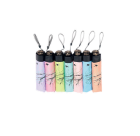 商品名称:碰击黑胶三折晴雨伞/莺歌燕舞 规 格:55cm*7k超轻 条 码: 6-912003-333747 箱子尺寸:375mm*240mm*265mm 装箱数量: 把 装箱重量: 9.38±0.2kg/箱
