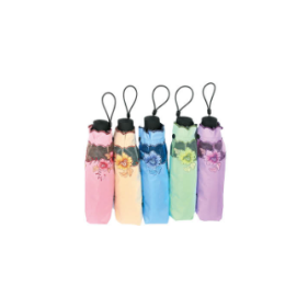 商品名称:全遮光碰击黑胶绣花三折晴雨伞/美仑美奂