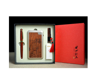 红木精品取红木之精华、之珍贵,取中国千年文化之精髓,经过能工巧匠的精雕细琢,打造出极具收藏价值的艺术精品。 适用于:学校、银行、外宾礼事、企业文化、旅游、保险金融等行业 品名:红木三件套: 红木10000电源/臻品红木8GU盘/花梨木笔 材质:花梨木/臻品红木U盘(U盘) 工艺:雕刻