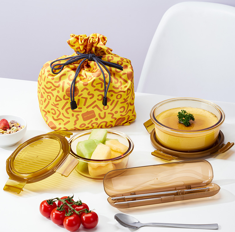 乐扣乐扣 晶彩琉光琥珀色圆形玻璃保鲜盒四件套>